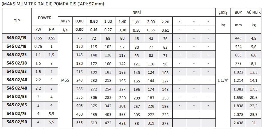 İmpo S4S 02/33 - 4'' Paslanmaz Tek Dalgıç Pompa 2 Hp, 215 Mss, 18 m3/h