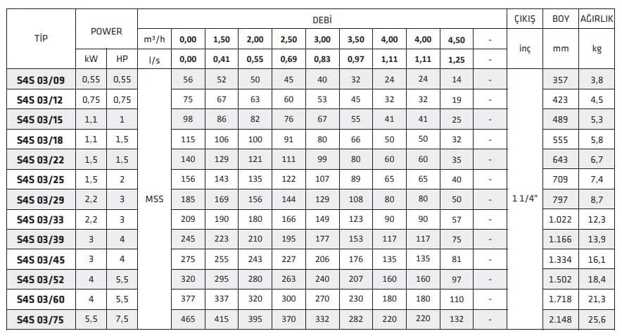 DİKKAT! : Bu pompa satın alındığında tek başına kullanıma hazır değildir. Bu pompaya uygun motor, halat, boru, kablo, pano, kuyu flanşı gibi diğer parçaların ayrıca satın alınması gerekmektedir.
