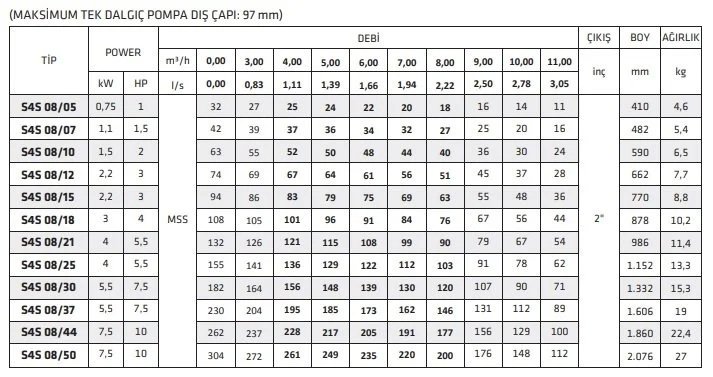 DİKKAT! : Bu pompa satın alındığında tek başına kullanıma hazır değildir. Bu pompaya uygun motor, halat, boru, kablo, pano, kuyu flanşı gibi diğer parçaların ayrıca satın alınması gerekmektedir.